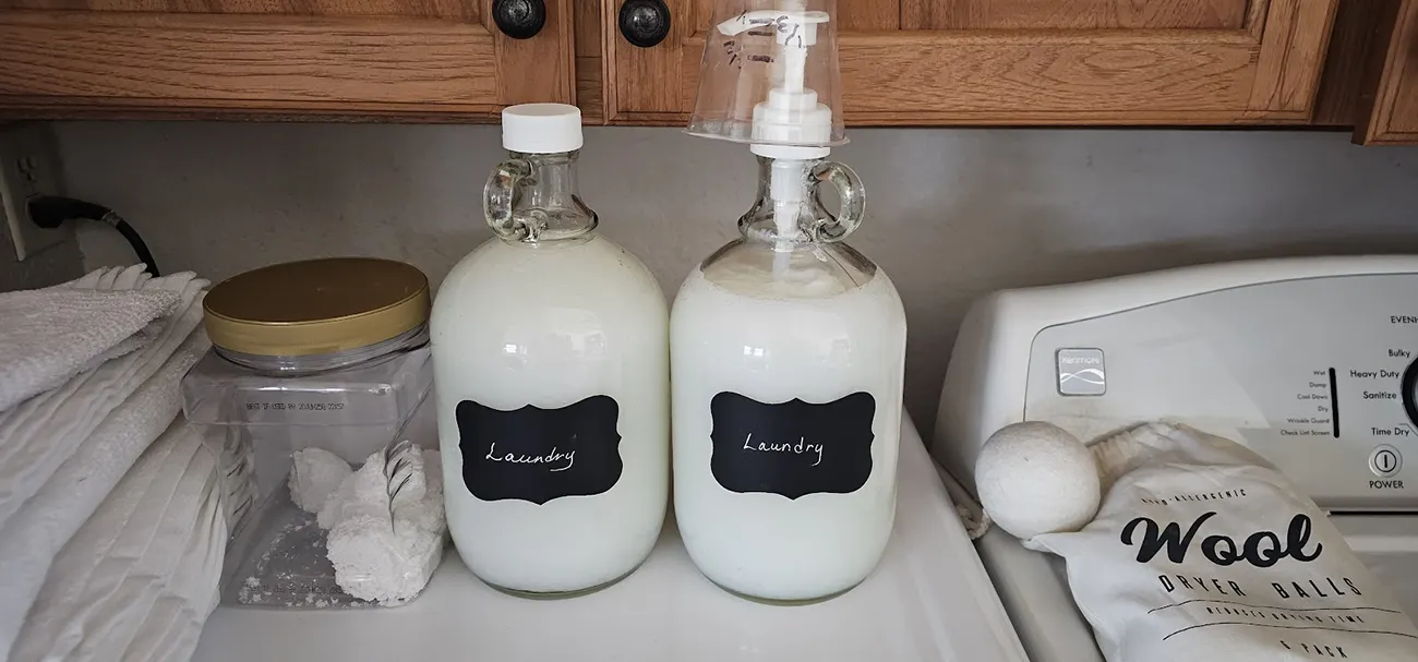 - The next day, stir well and fill an old laundry detergent container with detergent. If desired, add your essential oils at this point!