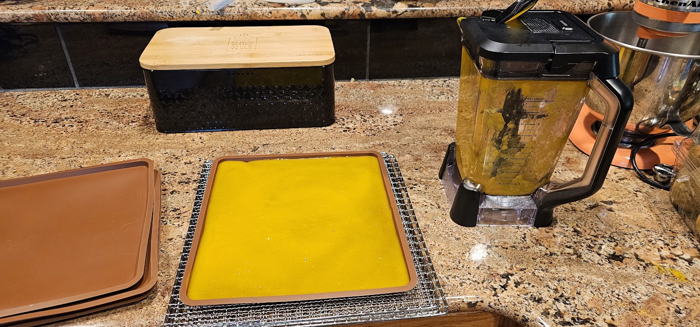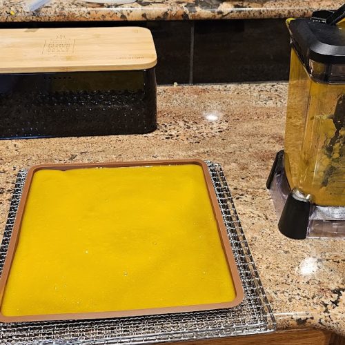 Today, I prepared mango kombucha and ended up with a decent amount of leftover puree. I thought it would be perfect to turn that into some fruit leather, which I really enjoy and find quite simple to make, especially since the fruit was all prepped. I used my Cosori dehydrator for the drying process. This is my second dehydrator, and it’s definitely my favorite one to date.